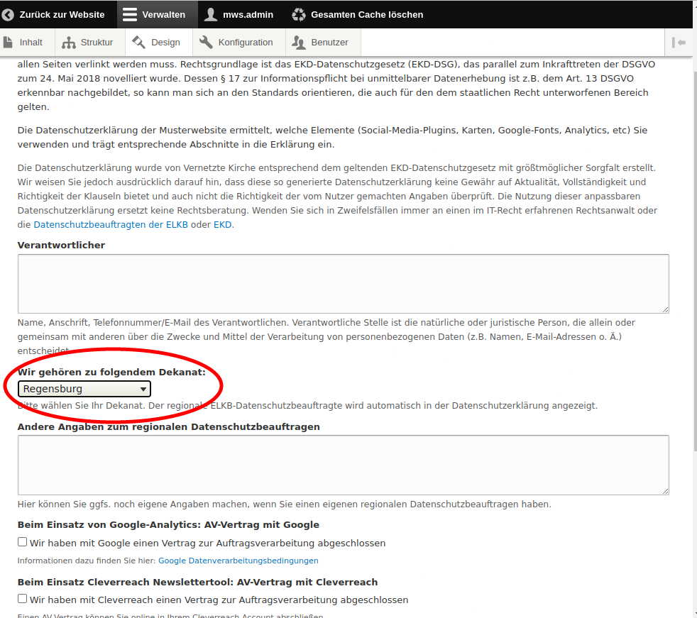 Der/die richtige Datenschutzbeauftragte wird dann automatisch ausgewählt und in Ihrer Datenschutzerklärung angezeigt.